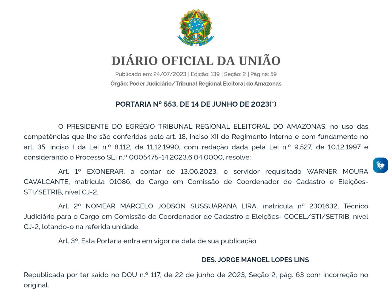 A Portaria nº 553, que traz a nomeação de Marcelo Sussuarana, foi publicada no diário eletrônico do órgão nesta segunda-feira, 24.