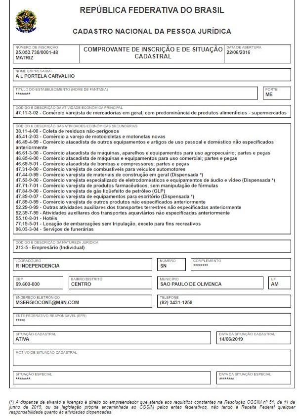 No documento da homologação não conta o CNPJ da referida empresa. Numa consulta ao site da Receita Federal, a reportagem a identificou com o número 25.053.738/0001-48.