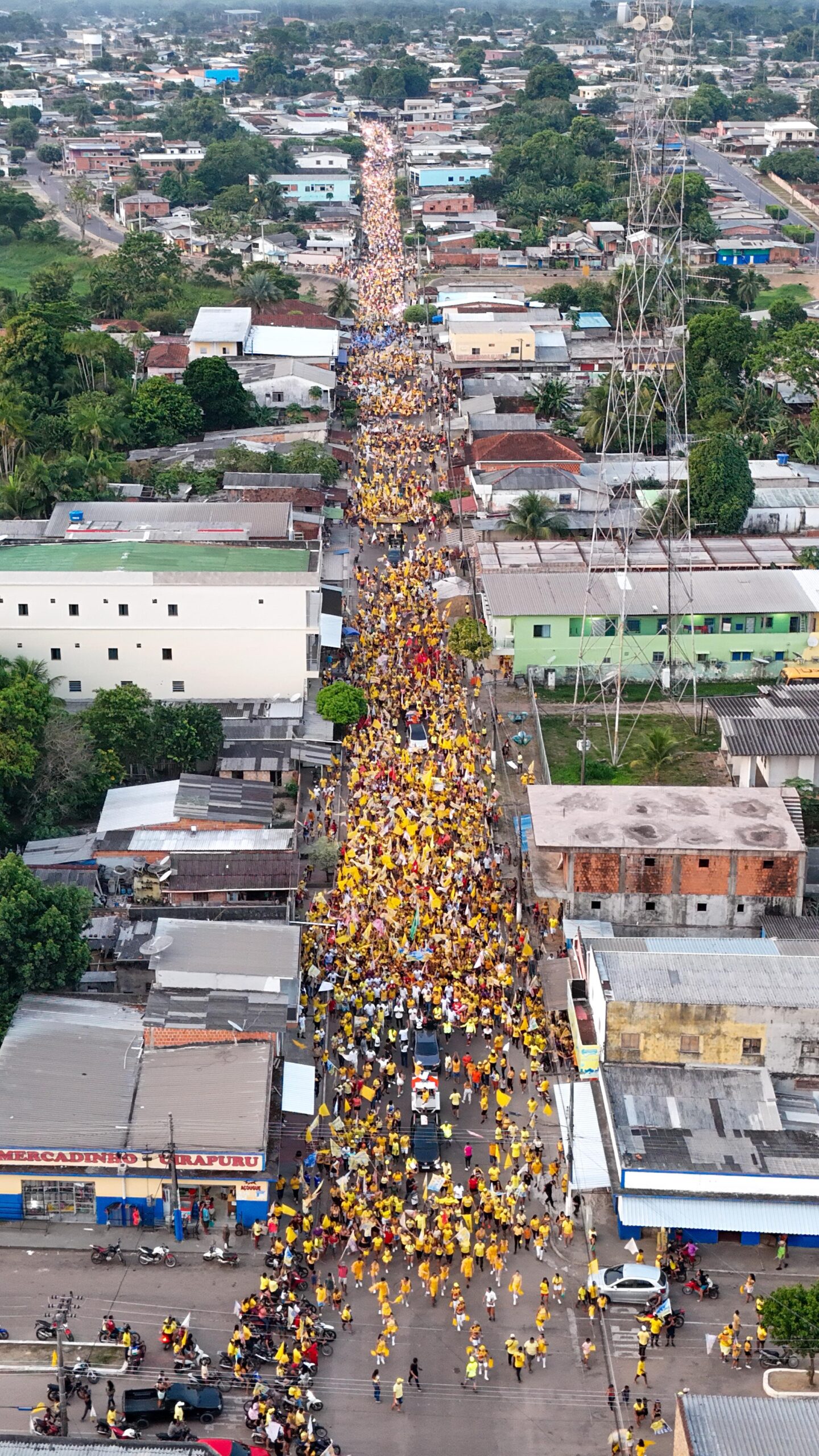 Em uma foto aérea, é possível ver a rua Dom Pedro tomada pelos simpatizantes de Mazzini, apelidados de “amarelinhos”. Na caminhada estiveram presentes o vice-prefeito Lulinha (PT) e o atual prefeito, Junior Leite. Mazzini tem apoio declarado do presidente Lula, que já gravou vídeo.
