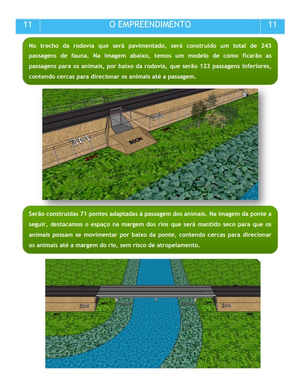 No projeto estão previstas 243 passagens de faunas, possibilitando o trânsito dos animais sem causar acidentes ou atropelamentos. Também vai contar com 49 passagens aéreas, para uma travessia segura. O Dnit afirma que a rodovia é pensada para que os animais da região continuem protegidos.