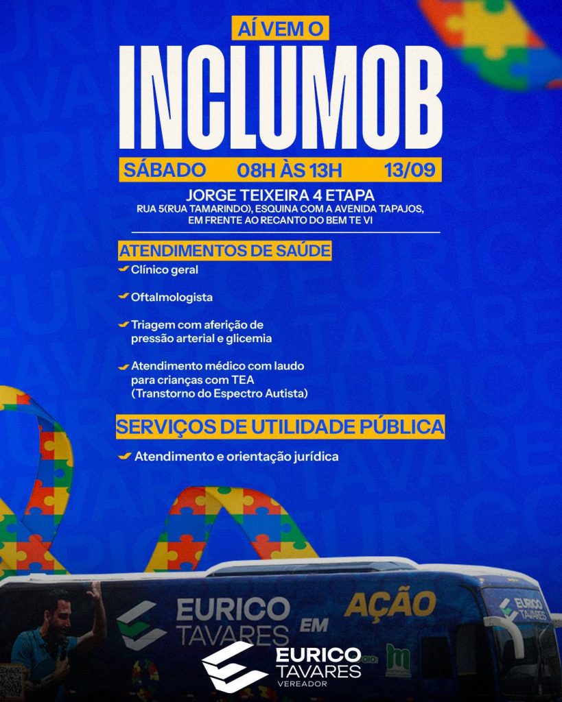 Segundo o próprio vereador, o IncluMob é uma UBS sobre rodas, conta com psicopedagogos, assistência social e promove serviços como corte de cabelo, marcação e encaminhamento de consultas, exames de vista e ajuste no INSS. Em entrevista, Eurico afirmou que o projeto foi aprovado pela Câmara. Com base nesta informação, o Portal O Poder procurou, mas não foi encontrado nenhum projeto de lei voltado para essa iniciativa.