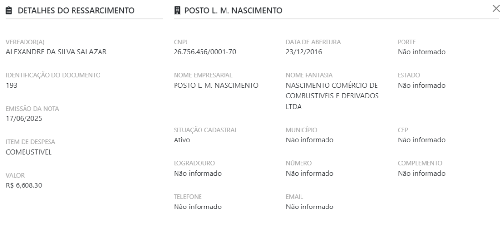 Os gastos com combustível também estão diretamente relacionados a esse trabalho de rua, que inclui o apoio a pessoas em situação de vulnerabilidade, transporte para consultas e exames, atendimentos jurídicos e verificação de denúncias e irregularidades encaminhadas ao mandato.