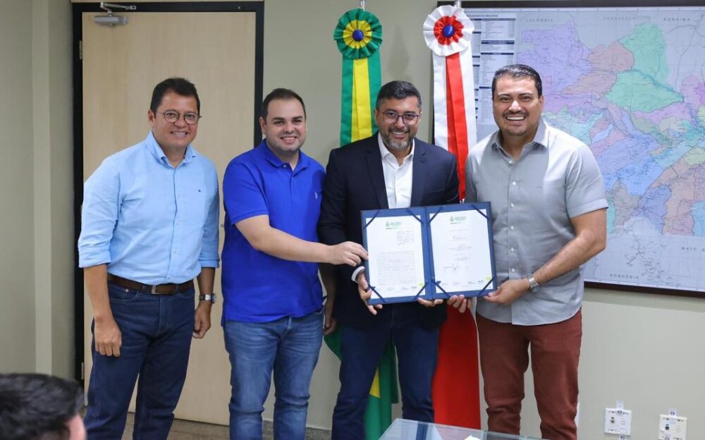 O governador Wilson Lima (União), o presidente da Assembleia Legislativa do Amazonas (Aleam), deputado Roberto Cidade (União), e o prefeito de Autazes, Thomé Neto (PP), assinaram no último sábado, 8, um convênio no valor de R$ 15 milhões para obras no sistema viário do município.