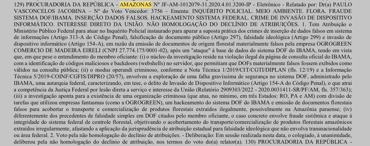 O relator do caso, procurador regional da República Paulo Vasconcelos Jacobina, destacou que o cenário investigado vai além de casos comuns de falsidade ideológica envolvendo DOFs. Segundo o entendimento apresentado no voto vencedor, há indícios de fraude sistêmica com ataque direto à integridade do sistema federal de controle ambiental.