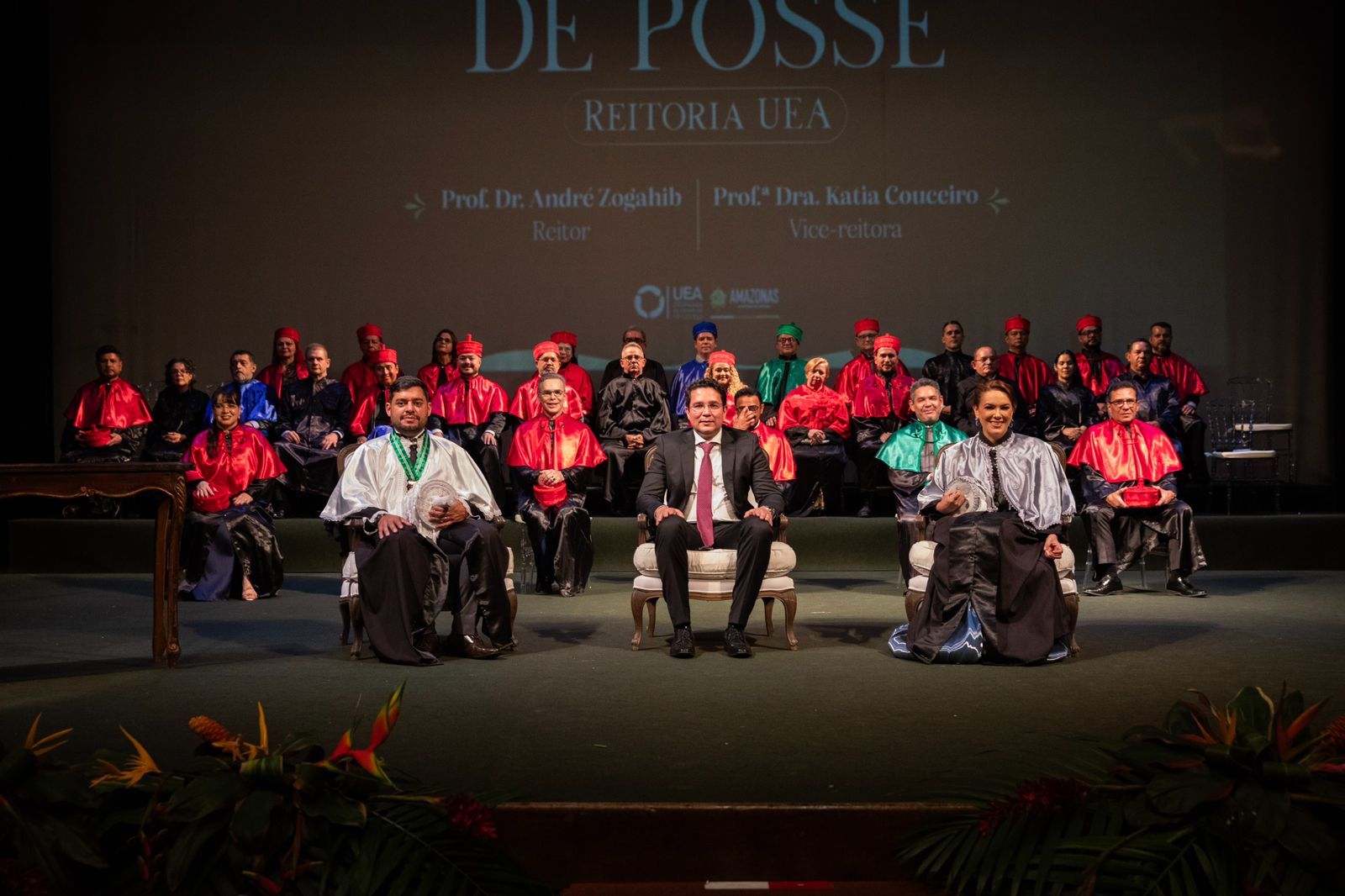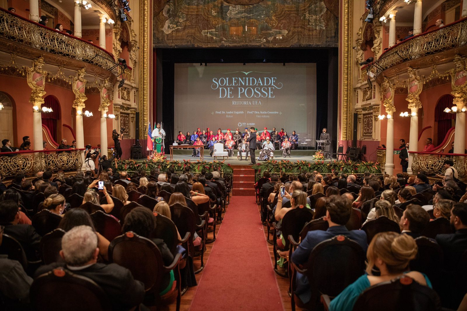Eleitos pela comunidade acadêmica para mais um mandato à frente da gestão superior da Universidade do Estado do Amazonas (UEA), André Zogahib e Katia Couceiro foram empossados, na noite desta terça-feira, 7, nos cargos de reitor e vice-reitora, respectivamente. A cerimônia foi realizada no Teatro Amazonas, reunindo autoridades públicas, gestores, familiares e docentes.