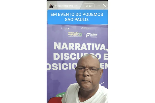 Horas antes, Sergio Felipe havia publicado em seu perfil no Instagram um story em frente a um banner com o anúncio de um evento da Fundação Juntos Podemos, controlada pelo partido, que ocorreria dois dias depois. A agenda contou com a participação da presidente da legenda, Renata Abreu, e de cinco deputados federais paulistas. “Em evento do Podemos em São Paulo”, escreveu o policial aposentado.