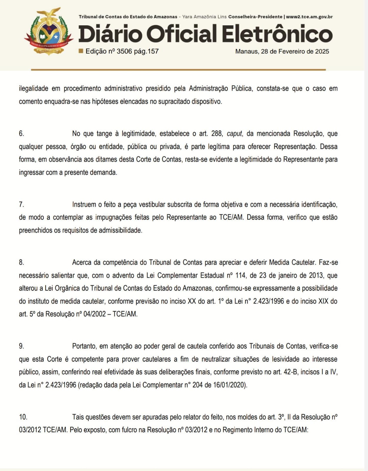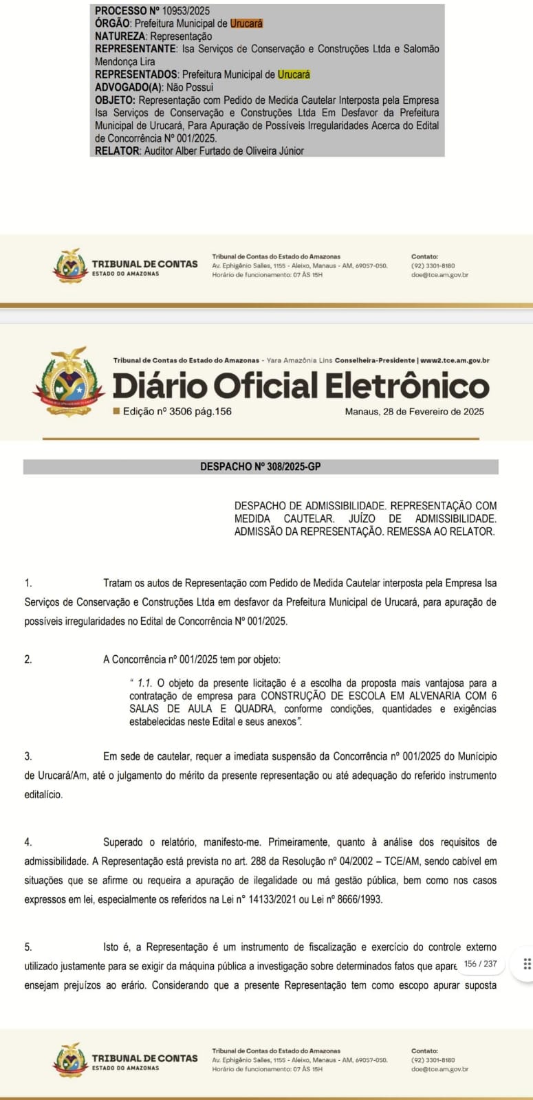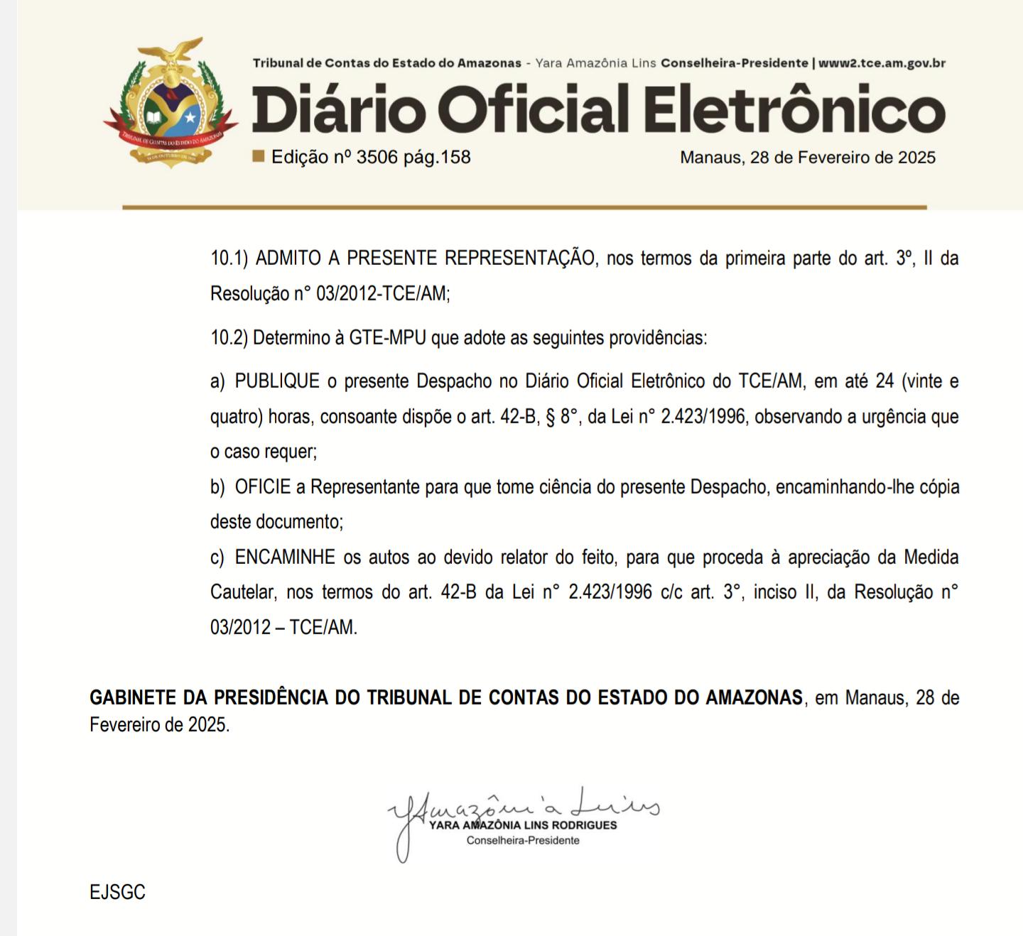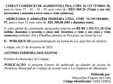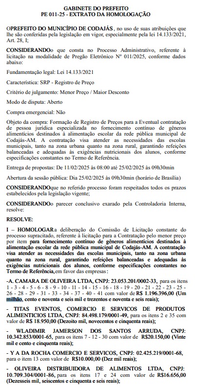 A dispensa de licitação considerou, conforme documento publicado no Diário Oficial dos Municípios do Amazonas, a emergência financeira e administrativa do município.