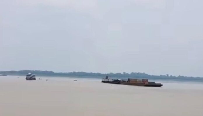 No rio Madeira, várias embarcações estão encalhadas. A cena está se repetindo na região, por causa da formação dos bancos de areia.